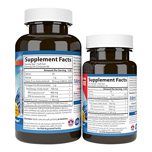 Carlson - Elite Omega-3 Plus D & K, 700 mg Omega-3s + D3 & K2, Function, Bone Health & Immune Support, Lemon, 60+30 Softgel