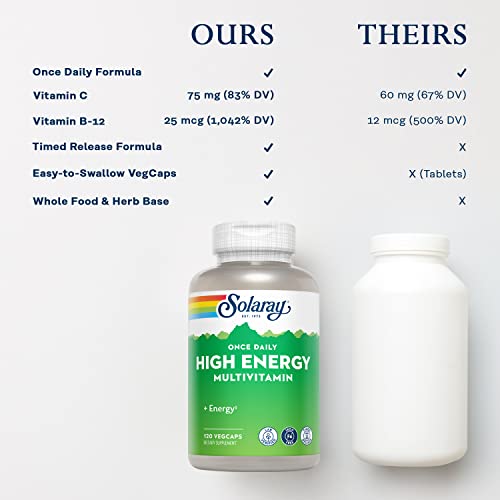 SOLARAY High Energy Multivitamin, No Iron, 1/Day, Timed-Release Formula, Whole Food & Herb Base 120 VegCaps