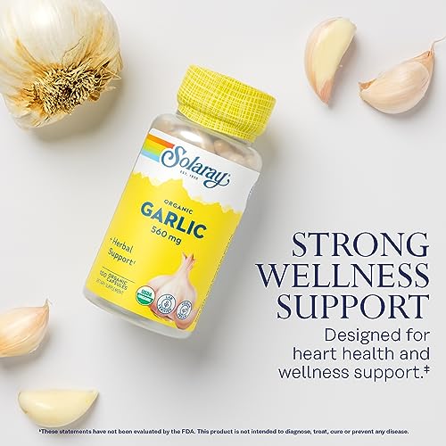 Solaray Organic Garlic Pills - 560 mg Garlic Supplements for Heart Health Support - USDA Organic Garlic Capsules - Vegan - 60-Day Money-Back Guarantee - 100 Servings, 100 VegCaps