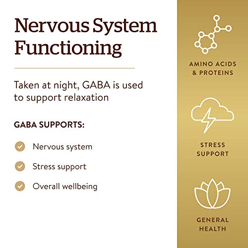 Solgar GABA 500 mg, 100 Vegetable Capsules - Relaxation & Nervous System Support - Amino Acid - Non-GMO, Vegan, Gluten Free, Dairy Free, Kosher - 100 Servings