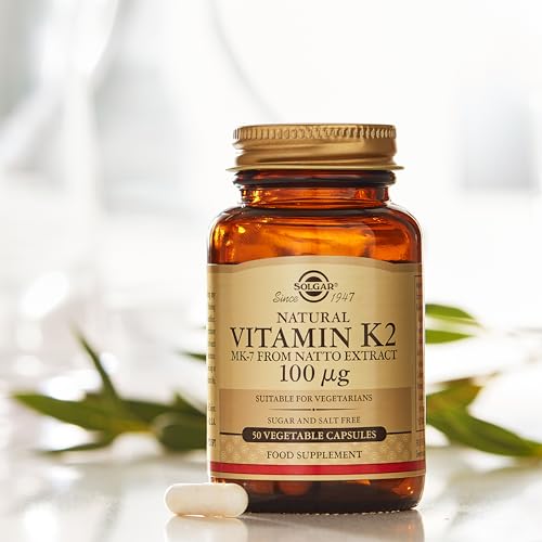 Solgar Vitamin K2 MK7 100mcg Vegetable Capsules Supports Bone Health Natural Whole Food Source from Natto Extract NonGMO Gluten Free Servings, Original, 50 Count