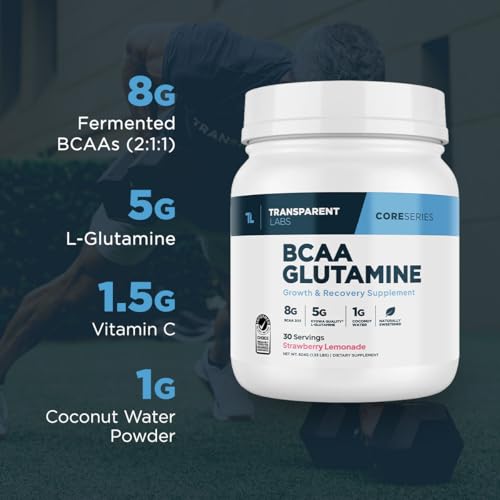 Transparent Labs BCAA Glutamine - 8000 Mg of BCAA Powder with L Glutamine for Post Workout Recovery, Muscle Growth, & Increased Endurance - 30 Servings, Strawberry Lemonade