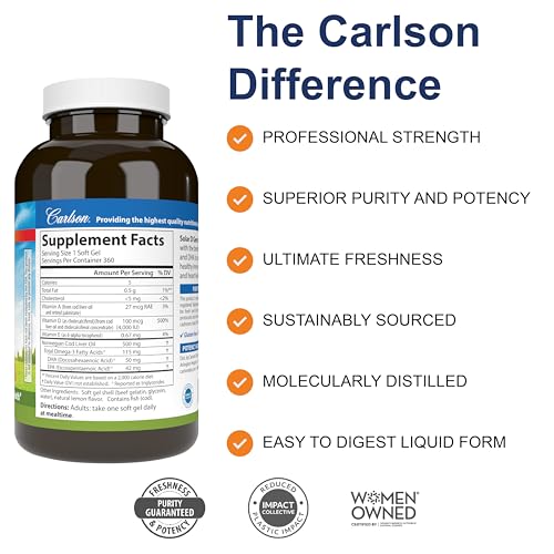 Carlson - Solar D Gems, Vitamin D3 and Omega-3 Supplement, 4000 IU (100 mcg) D3, 115 mg Omega-3 EPA and DHA, Vitamin D Fish Oil Capsule, Bone & Immune Health, Vitamin D Supplement, Lemon, 360 Softgels