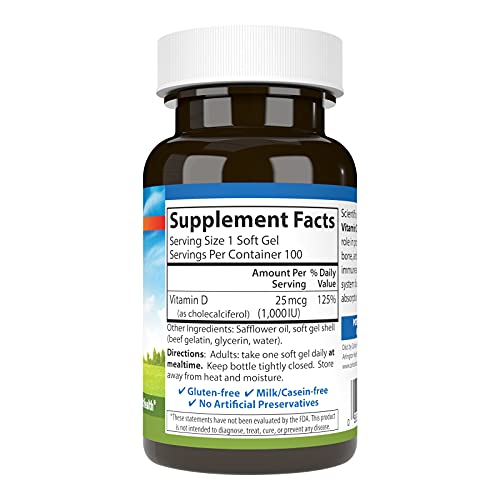 Carlson - Vitamin D3, 1000 IU (25 mcg), Bone Health, Muscle Health, Cholecalciferol, Vitamin D Supplements, Vitamin D3 Soft Gels, 100 Softgels