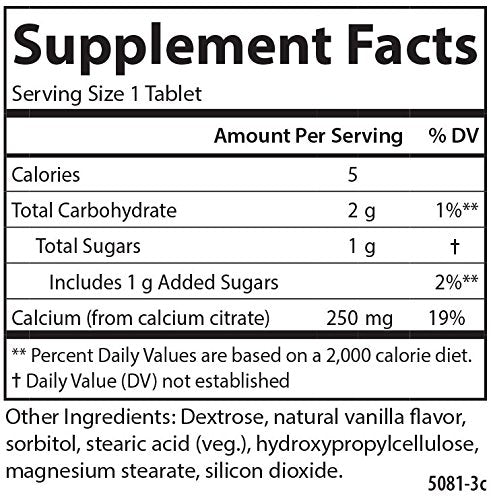 Carlson Chewable Calcium Citrate 250 mg, Vanilla, 120 Tablets