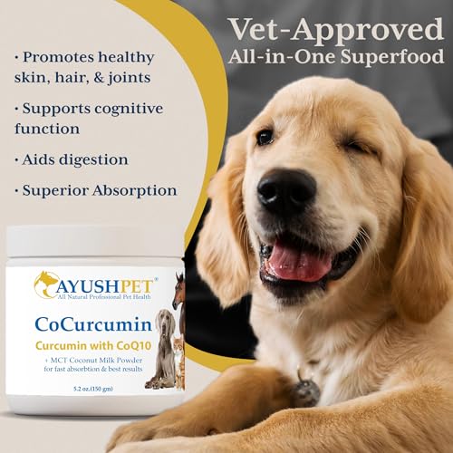 Ayush Herbs Ayush Pet CoCurcumin with Coq10, Muscle and Joint Pet Superfood Powder, Heart and Digestion Support, Small or Large Animals, Young and Senior Pet Supplement, 5.2 Ounces