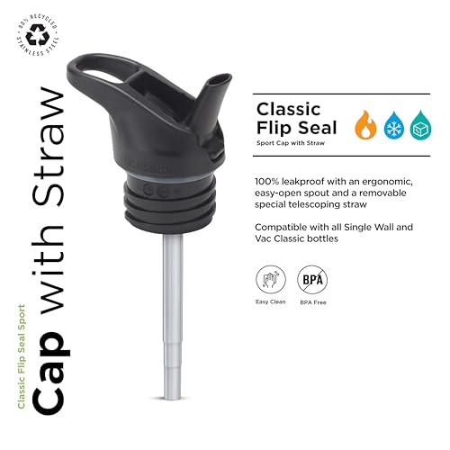 Klean Kanteen Classic Flip Seal Sport Cap with Metal Straw – 100% Leakproof, Reliable Cap - Ergonomic with Steady Flow - Eco-Friendly & BPA-Free