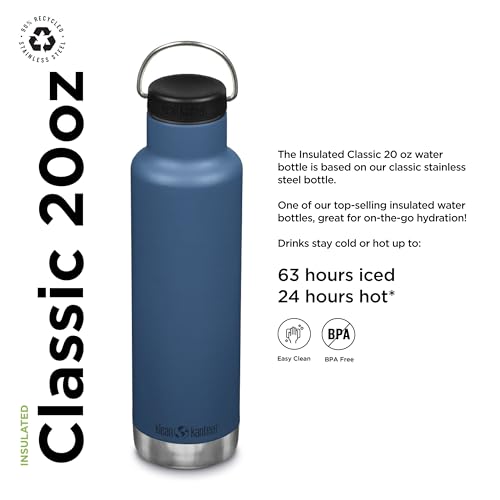 Klean Kanteen Classic Stainless Steel Double Wall Insulated Water Bottle with Loop Cap