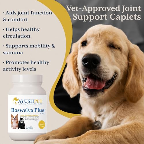 Ayush Pet Boswelya Plus, Joint and Muscle Support for Pets, Ayurvedic Pet Supplement with Boswellia, Ginger, and Bromelain, Large or Small Animals, 90 Vegetarian Caplets