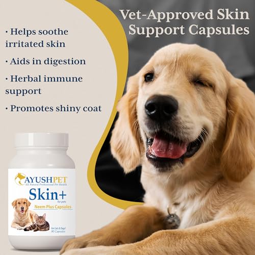 Ayush Pet Skin Plus, Neem Supplement for Healthy Skin and Coat, Supports Gut and Immunity, 90 Capsules