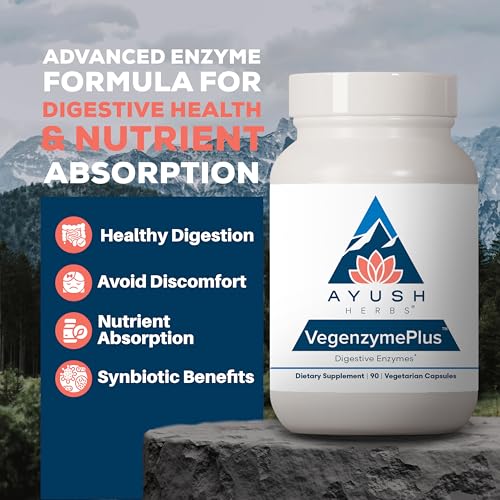 Ayush Herbs VegenzymePlus - Digestive Enzymes for Women & Men, Enzymes for Digestion with Bromelain, Lipase, Lactase, Protease, 100% Vegetarian Gut Health Supplement - 60 Capsules (1 Count)