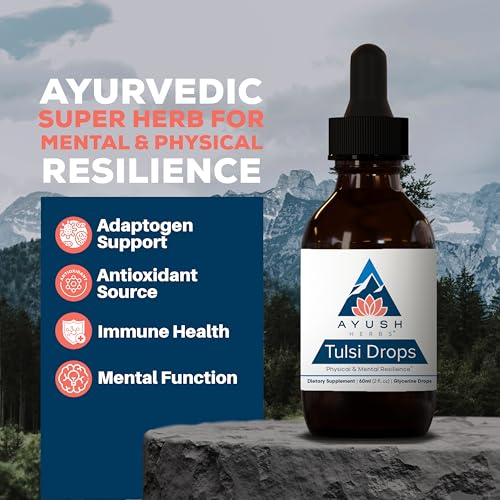 Ayush Herbs Tulsi Drops - Alcohol-Free Tulsi Drops, Holy Basil Gylcerite, Natural Immune-Support Drops for Kids & Adults, Calm & Focus Booster - 2 Fl Oz (80 Servings)