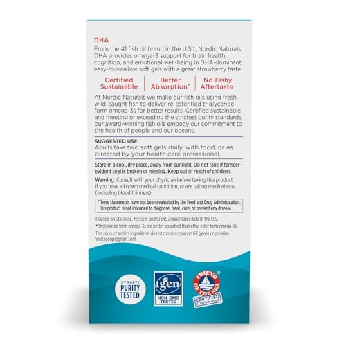 Nordic Naturals DHA, Strawberry - 90 Soft Gels - 830 mg Omega-3 - High-Intensity DHA Formula for Brain & Nervous System Support - Non-GMO - 45 Servings