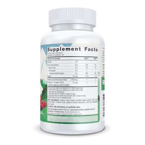 Nordic Naturals Kids Nordic Flora Probiotic Gummies, Merry Berry Punch - 60 Gummies - 1.5 Billion CFU & Prebiotic Fiber - Non-GMO, Vegan - 30 Servings