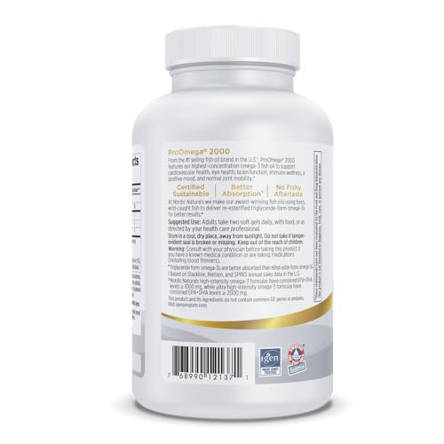 Nordic Naturals ProOmega 2000, Lemon Flavor - 120 Soft Gels - 2150 mg Omega-3 - Ultra High-Potency Fish Oil - EPA & DHA - Promotes Brain, Eye, Heart, & Immune Health - Non-GMO - 60 Servings