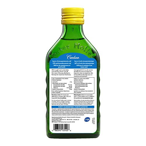Carlson - Cod Liver Oil, 1100 mg Omega-3s, Liquid Fish Oil Supplement, Wild-Caught Norwegian Arctic, Sustainably Sourced Nordic Liquid, Lemon, 250 ml