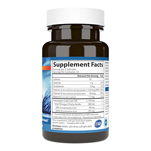 Carlson - Cod Liver Oil Minis, 280 mg Omega-3s + Vitamins A & D3, Heart Support & Cognitive Function, Vision Health, 100 Mini Softgels