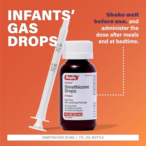 Rugby Infants' Simethicone Drops - Simethicone 20 mg Liquid for Newborns, Babies, Toddlers, and Kids - May Help Reduce Symptoms of Gas - No Artificial Colors, Flavors or Dyes - 1 Fl Oz - (4 Pack)