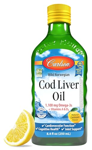 Carlson - Cod Liver Oil, 1100 mg Omega-3s, Liquid Fish Oil Supplement, Wild-Caught Norwegian Arctic, Sustainably Sourced Nordic Liquid, Lemon, 250 ml