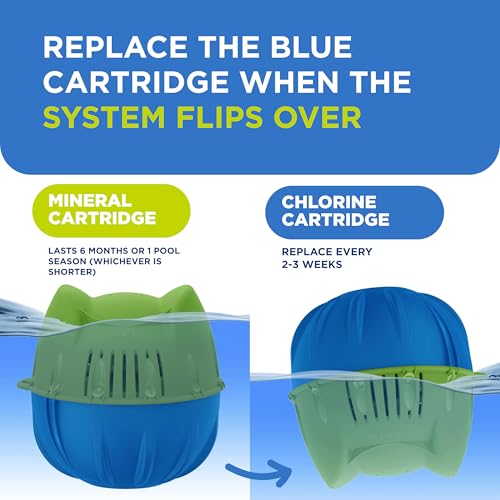 - Convenient Prefilled Cartridges: Replace the Flippin FROG Chlorine Cartridge every 3 to 4 weeks throughout your swim season depending on pool use and weather conditions; the Flippin FROG Mineral Cartridge lasts 6 months or 1 pool season