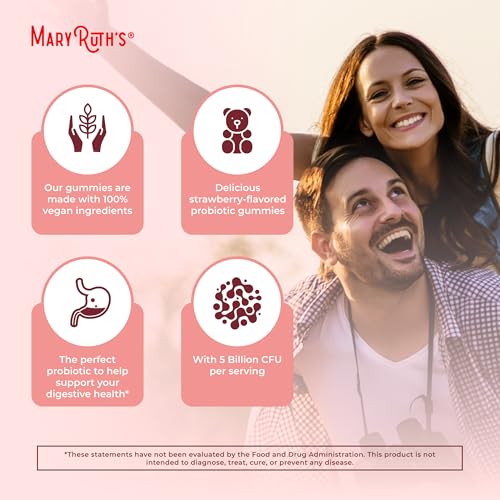 MaryRuth Organics USDA Organic Probiotic Gummies |Probiotics forWomen & Men Digestive Health & Gut Comfort Supplement 5 Billion CFU | Immune & Digestive Support | Vegan | Non-GMO | 60 Count