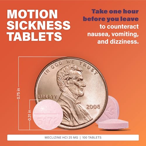 - TRAVEL SICKNESS TABLETS: Whether you are traveling by sea, air, or land, these chewable 25 mg meclizine HCl tablets help provide relief. Take one hour before you leave to experience the effects in time.
