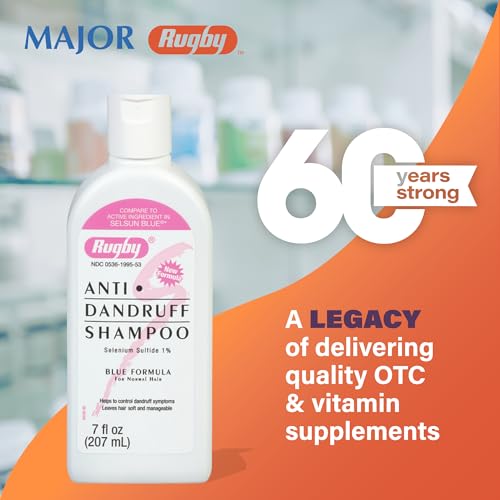 - ANTI-DANDRUFF SHAMPOO: Rugby's Selenium Sulfide Anti-Dandruff Shampoo helps to control dandruff symptoms and leave hair soft and manageable. This blue formula is made for normal hair.