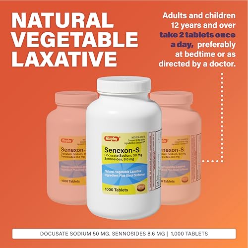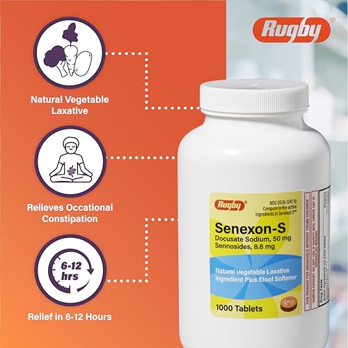 - LAXATIVE AND STOOL SOFTENERS: The Rugby Senexon-S Natural Vegetable Laxative Plus Stool Softener relieves occasional constipation (irregularity) and generally promotes a bowel movement in 6 to 12 hours.