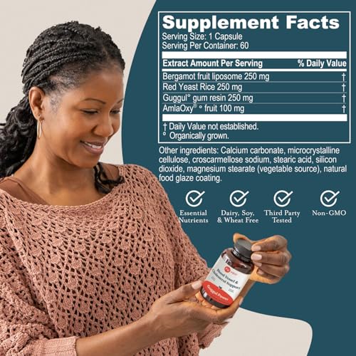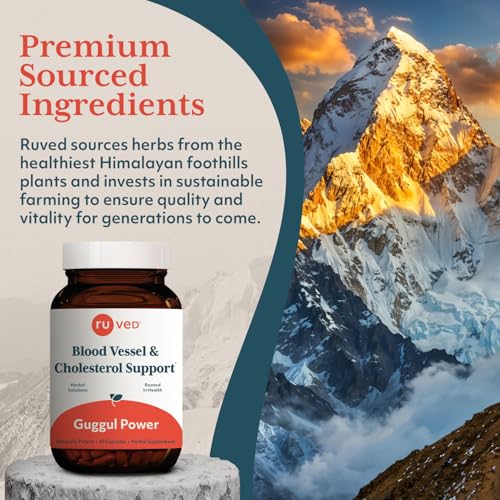 Ruved Guggul Power Herbal Supplement for Ayurvedic Cholesterol Support, Red Yeast Rice, Bergamot, Guggul, and Amla Supplement for Women and Men, 60 Vegetarian Capsules